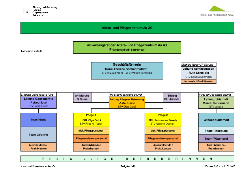 Die Alters- und Pflegezentrum Au AG ist eine der grössten Arbeitgeberinnen in Steinen. Aufgaben und Kompetenzen sind für alle geregelt.